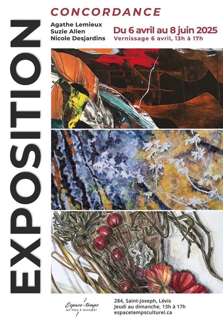 Avril 2025 – Concordance – Exposition par Agathe Lemieux, Suzie Allen et Nicole Desjardins
