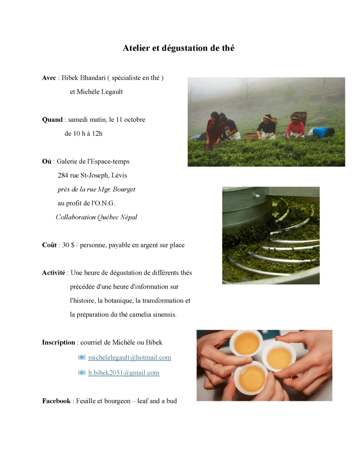 Nombre de participants : 10 adultes (réservation au 418-808-2734)