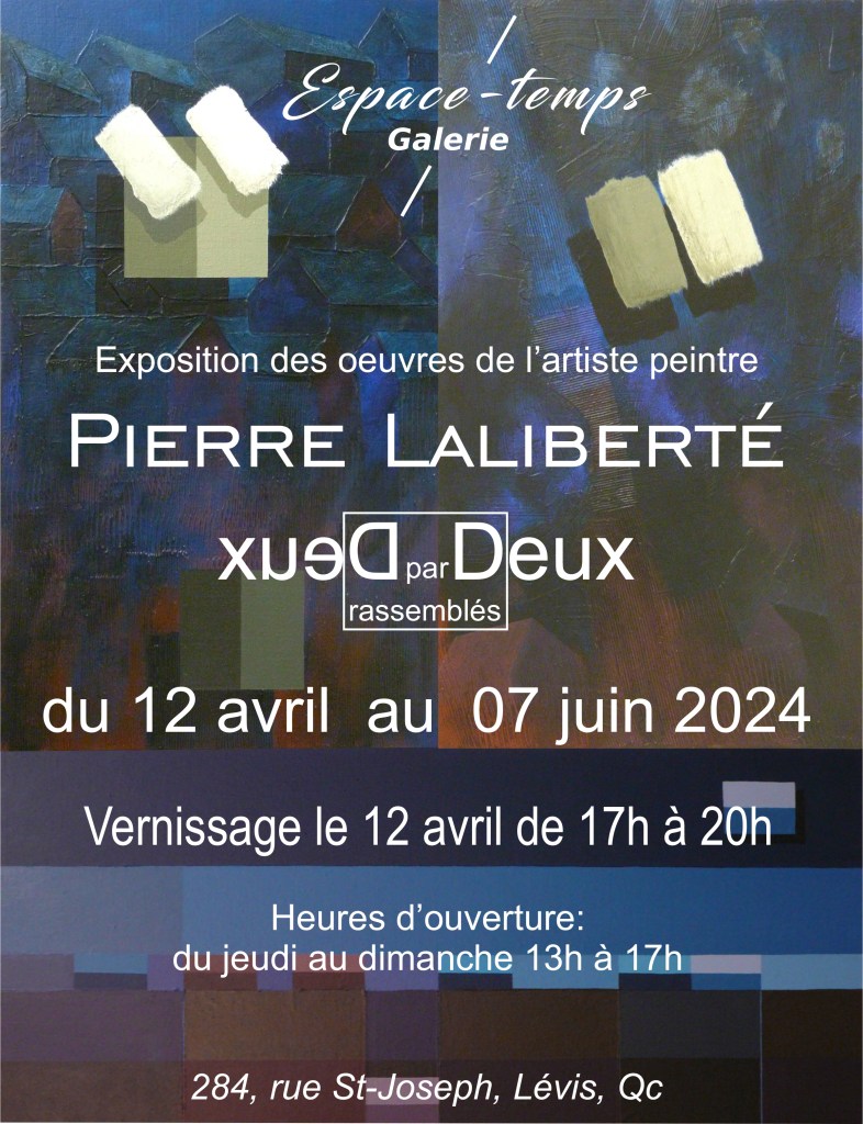 Lieu : Galerie de l’Espace-temps, 284, rue Saint-Joseph, Lévis